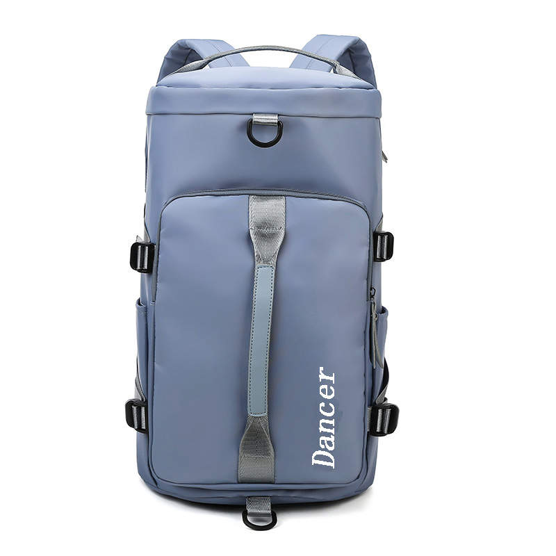 This Backpack comes with adjustable padded shoulder straps, a large inside divider pocket, an inside zipped pocket, a front zipped pocket, 2 zips, 2 side pockets, a side/bottom zipped section for shoes, 4 adjustable side straps ideal for yoga mats and a large over the shoulder strap.